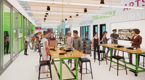 The 65,000 sq. foot former grocery store will be turned into a world-class learning facility with four key areas; Makerspace, Technology Lab, Fabrication Workshop and Incubation Hub. Each space will have cutting edge tools and technology where students learn to solve problems and to develop real-life solutions.